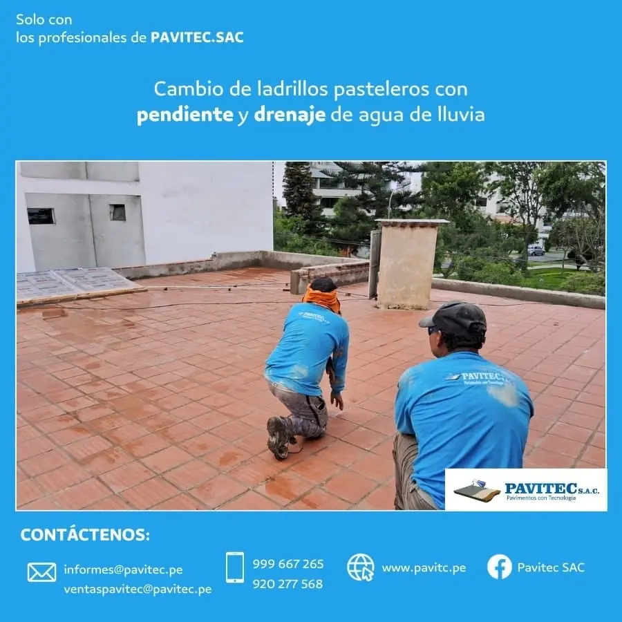 - Realización de canaletas con pendientes hacia los sumideros para evacuación de agua de lluvia.